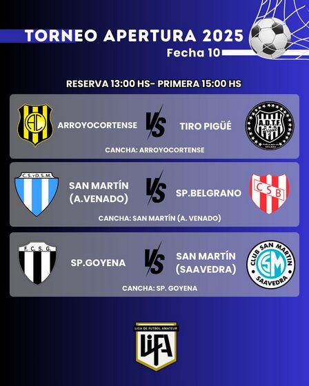 La Liga de Fútbol Amateur disputará la 10° Fecha