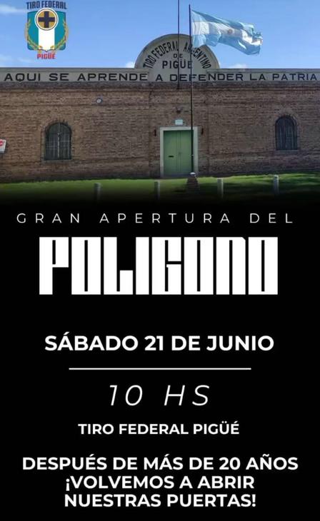 El Club Tiro Federal de Pigüé abrirá su polígono con un acto especial