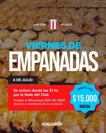 Hay venta de empanadas en Club Unión Pigüé