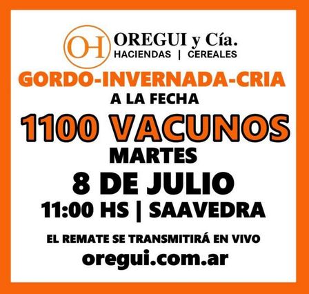 Se hará un nuevo remate, el día martes 8 de julio de 2025, por la mañana, con gordo, invernada, y cría, en la Asociación Rural de Saavedra.