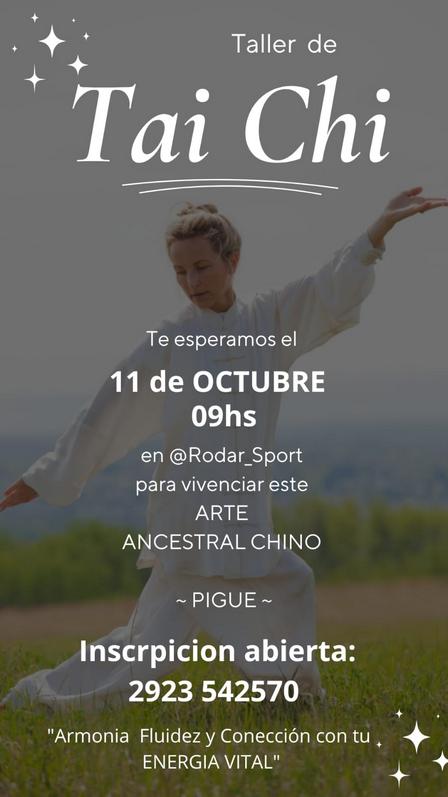 Este sábado, 11 de octubre de 2025, desde las 9.00 horas, se desarrollará este encuentro, en Rodar Sport, ubicado en calle San Luis esquina Avenida Clemente Cabanettes de Pigüé, a cargo de Néstor Omar Asin, para vivenciar el arte ancestral chino.