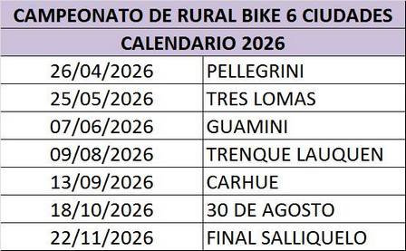 Fijaron las fechas del Campeonato de Rural Bike 6 Ciudades