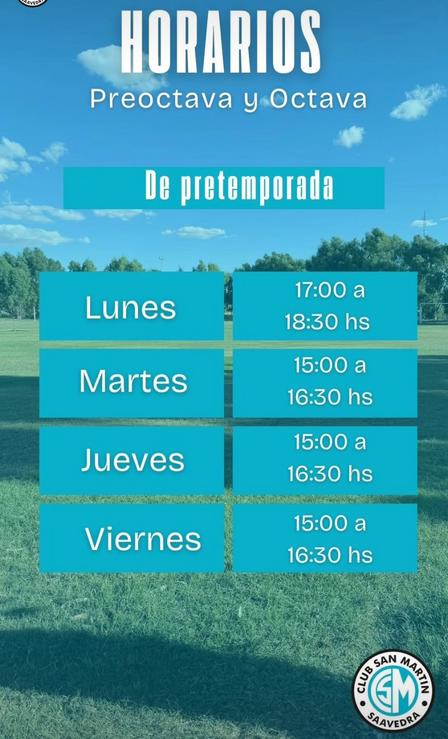 Están los horarios para las prácticas de Octava y Pre Octava en el Fútbol de San Martín de Saavedra