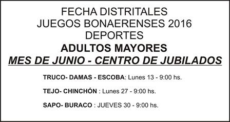 En el Centro de Jubilados de Pigüé se hará la fecha de los Torneos Bonaerenses 2016.