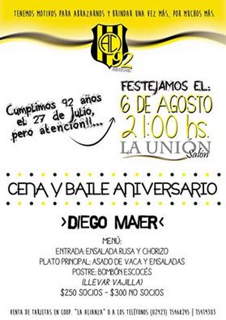 El día 6 de agosto, a las 21:00 horas. en el Salón La Unión, se hará la fiesta por un nuevo aniversario del Club Arroyocortense.