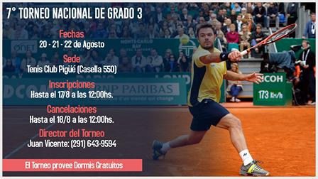 Ya se encuentran abiertas las inscripciones para el 7° Torneo Nacional de Grado 3, a disputarse en la ciudad de Pigüé.