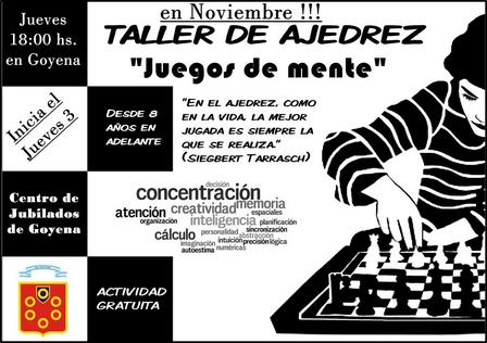 El jueves 3 de noviembre, en Goyena, se estará llevando a cabo la primera clase del Taller de Ajedrez.
