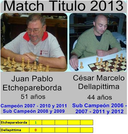 Pablo Etchepareborda superó con piezas Blancas a César Dellapittima en la primera partida del Match por el Titulo de Campeón del Club de Ajedrez 2013.