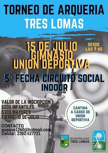 El Torneo de Arquería se disputará en el Gimnasio Unión Deportiva, el 15 de julio, a partir de las 9.00 horas.