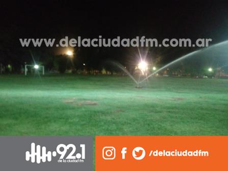 Realizan tareas de riego en la cancha del Torneo Guillermo Palma