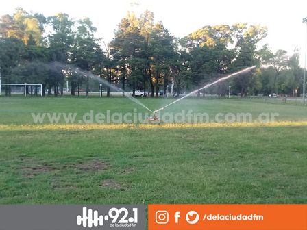 En el transcurso de estas noches están procediendo a regar el espacio ubicado en el Parque Municipal.
