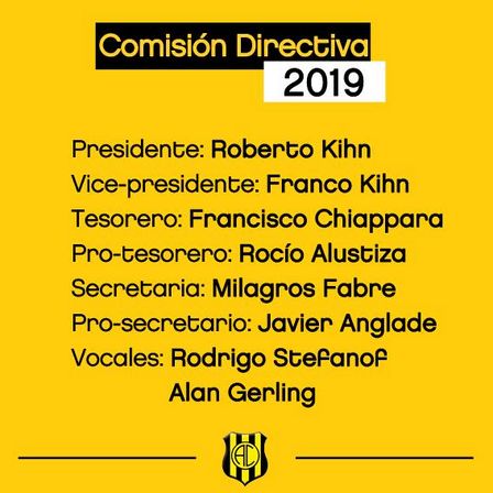 La Comisión Directiva está integrada ahora por Roberto Kihn, que permanece en la Presidencia, Franco Kihn que es el Vicepresidente, Francisco Chiappara el Tesorero y Rocío Alustiza la Protesorera.