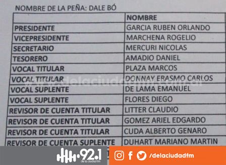 Después de lo resuelto en la Asamblea General se conformó la Comisión Directiva de la Peña Dale Bo!.