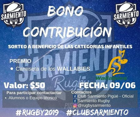 El día 9 de junio estarán sorteando una remera del seleccionado Wallabies en Sarmiento Rugby.
