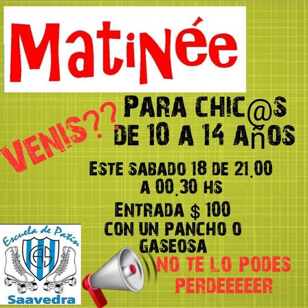 El sábado, por la tarde, se llevará a cabo una nueva matiné para chicos en Saavedra.