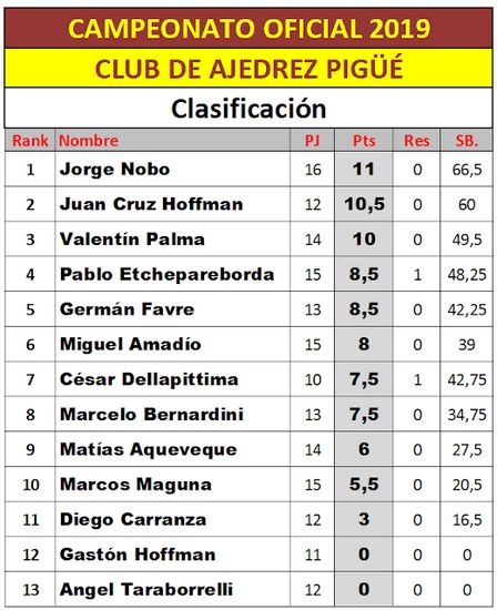 Juan Cruz Hoffman que ostentaba un récord de 10 victorias y una Tabla, no pudo mantener su invicto al caer llevando las piezas Blancas contra Pablo Etchepareborda.