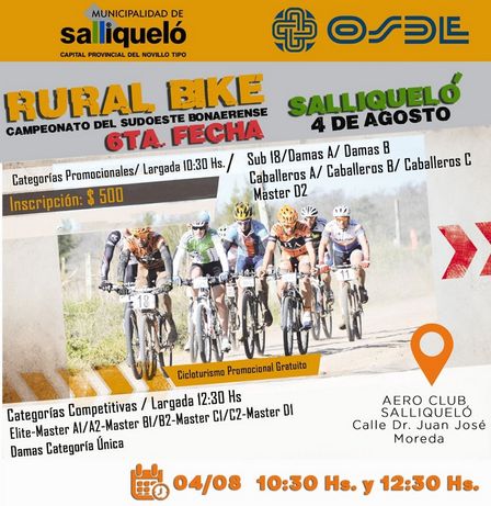 Se disputará en la localidad de Salliqueló la sexta fecha del Rural Bike del Sudoeste.