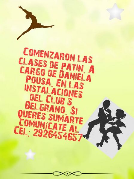 Ahora están anotando a las personas interesadas en incorporarse a las clases de Patín en el Club Sportivo Belgrano de Espartillar.