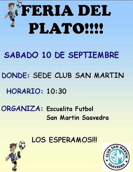 Este sábado se llevará a cabo, desde las 10.30 horas, una nueva Feria del Plato organizada por la Escuelita de Fútbol de San Martín de Saavedra.