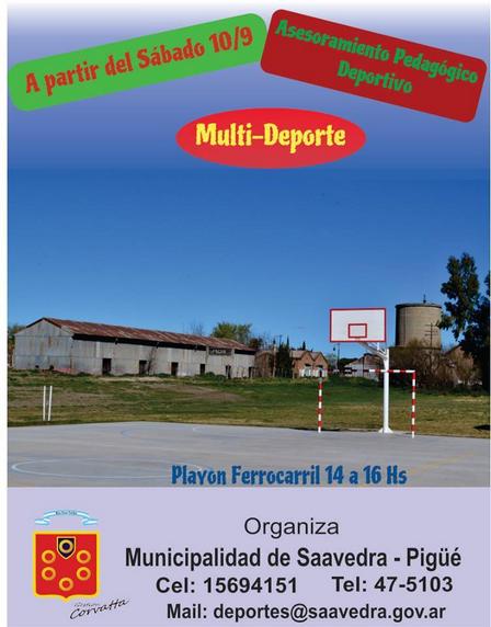 El sábado, mañana, será inaugurado el espacio de asesoramiento pedagógico deportivo en el Playón Deportivo del Ferrocarril en la localidad de Saavedra.