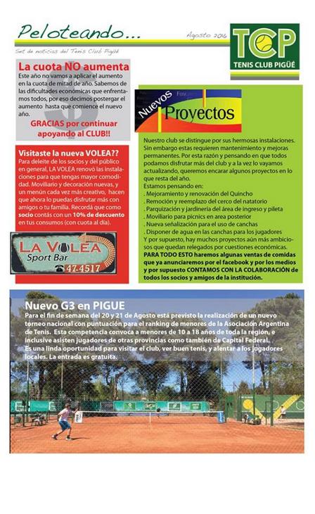 Peloteando es la publicación del Tenis Club Pigüé en la que la entidad se explaya sobre las últimas actividades realizadas.