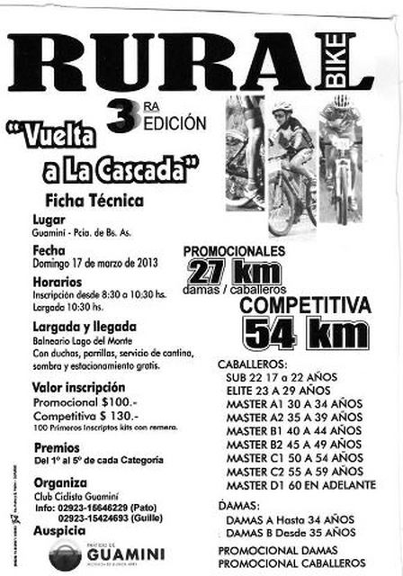 En el mes de marzo, el día domingo 17, tendrá lugar una competencia de Rural Bike en el Distrito de Guaminí.