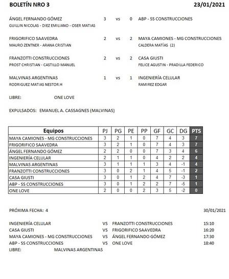 El Rinconcito & Mandale Fruta 1 vs. FM de la Ciudad & Elásticos Cabrera 3 – Para los derrotados marcó Carlos Díaz, mientras que, en el equipo ganador hubo dos goles de Mario Domenicale y uno de Pablo Rukel.