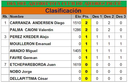 Germán Favre y Valentín Palma Caioni vencieron por 2 a 0 en sus respectivos duelos para seguir encabezando la tabla de posiciones del Torneo Día del Ajedrecista.