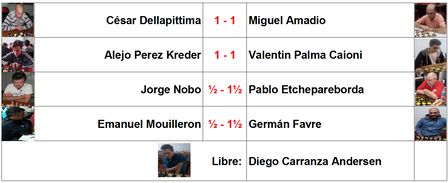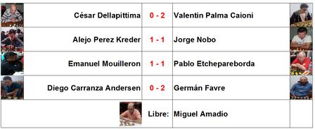 En el caso de Germán Favre derrotó a Diego Carranza Andersen, mientras que, Valentín Palma hizo lo propio con César Dellapittima, registrándose empates en los otros cruces.