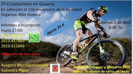 El jueves 2 de abril se llevará a cabo el Segundo Cicloturismo en adhesión al 118 Aniversario de la Fundación de la localidad.