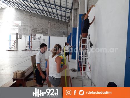 Se desarrolló la primera jornada de pintura desarrollando trabajos en las paredes del gimnasio del CEF.