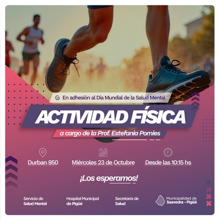 En adhesión al Día Mundial de la Salud Mental se estará llevando adelante esta actividad a cargo de la Profesora Estefanía Pomiés.