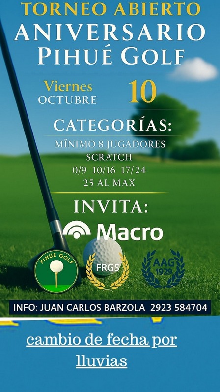 Pihué Golf difundió los horarios de las salidas para su Torneo Aniversario