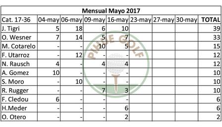 Juan Ignacio Tigri es el líder del certamen mensual en la divisional 17 a 36 sumando 39 puntos, seguido de Oscar Wesner, que tiene 33, y de Marcelo Cotarelo que registra 15.