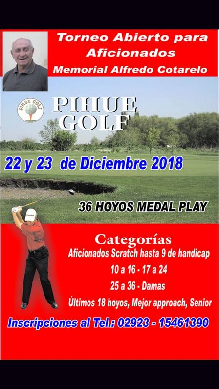Pigüé Golf está anunciando el tradicional certamen deportivo para los días sábado 22 y domingo 23 de diciembre.