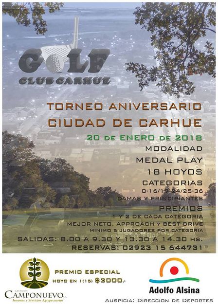 El Torneo Aniversario Ciudad de Carhué se disputará este sábado, desde las 8.00 horas, bajo la modalidad Medal Play.