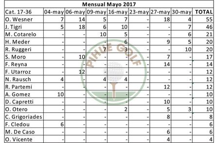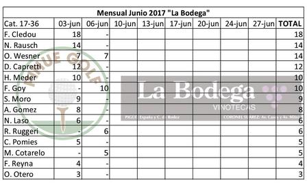 En el cuarto puesto de la Divisional 17 a 36 está Daniel Carpetti, quinto figura Horacio Meder, y sexto Fabián Goy.