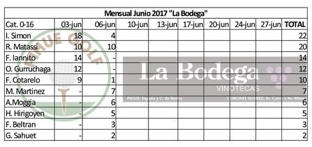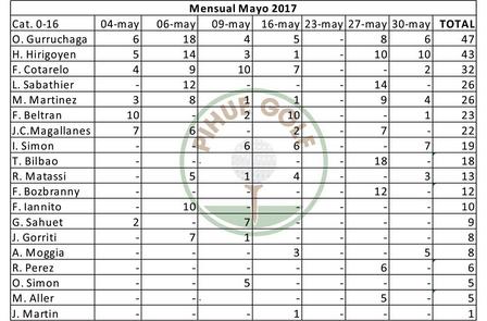 En el tercer lugar de la Categoría 0 a 16, está Federico Iannito, cuarto Omar Gurruchaga, y quinto Fernando Cotarelo.