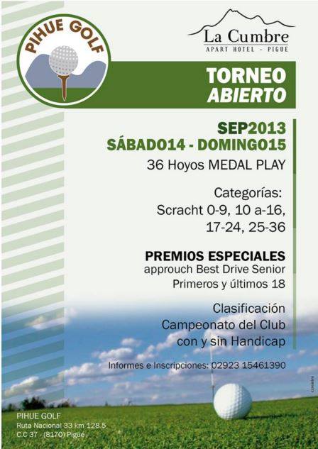 Según le indicaron a FM de la Ciudad en el Pigüé Golf habrá un Torneo Abierto.