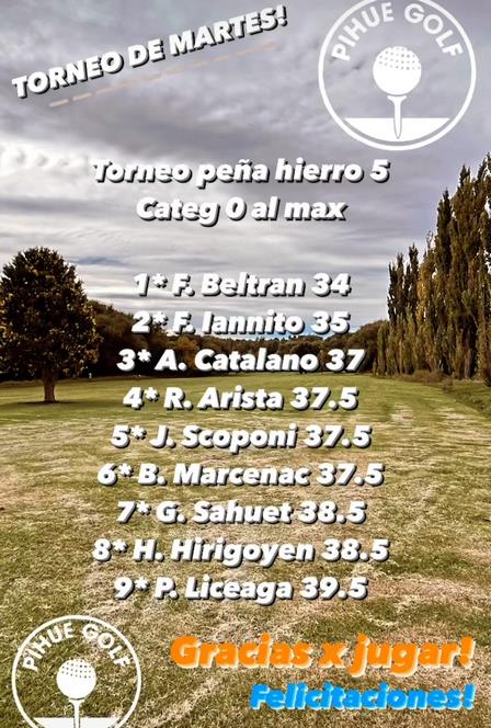 El Torneo Mensual de la Peña Hierro 5 tuvo estos resultados: