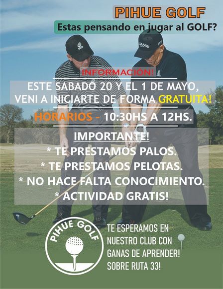 El sábado 20 de abril, al igual que el día miércoles 1 de mayo, desde las 10.30 hasta las 12.00 horas, se podrá acudir al predio ubicado a metros de la Ruta Nacional 33 para adentrarse en la práctica del golf.