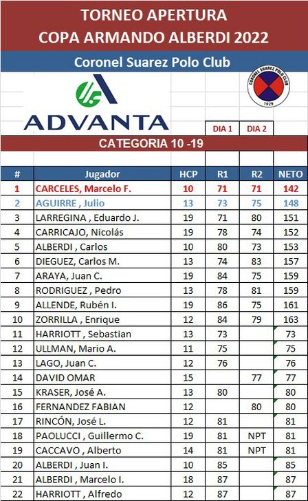 Por un golpe a favor de Sebastián Heguy el representante pigüense Matías de Caso finalizó en el segundo lugar la competencia, ya que, el vencedor contabilizó 220 impactos, mientras que, el jugador de Pihué Golf sumó 221.