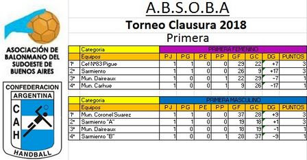 El sábado habrá varios partidos de handball por una nueva fecha del Torneo de la ABSOBA.