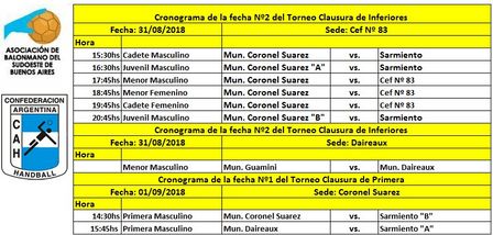 En el transcurso del día de hoy se disputarán tres cotejos que han quedado pendientes de la primera fecha de inferiores de la Asociación de Balón Mano del Sudoeste Boanerense.