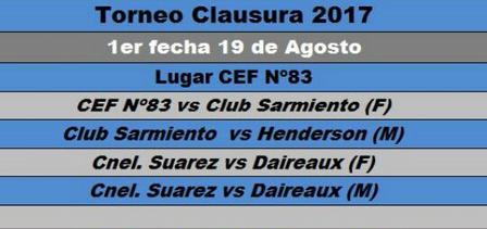 En el Polideportivo del CEF se medirán entre sí Coronel Suárez, Daireaux, Sarmiento, y los dueños de casa.