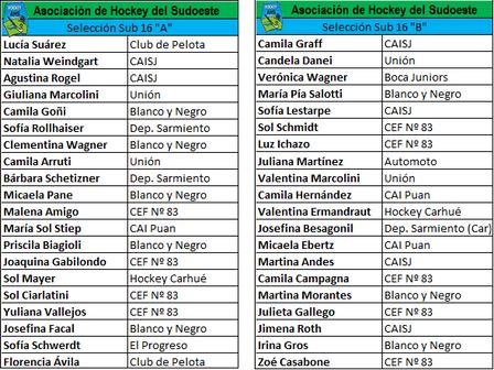 Se confirmaron las 40 jugadoras que representarán a la Asociación de Hockey del Sudoeste en el Campeonato Regional Bonaerense de Selecciones Sub 16, a desarrollarse desde el 23 al 26 de este mes en Tandil.
