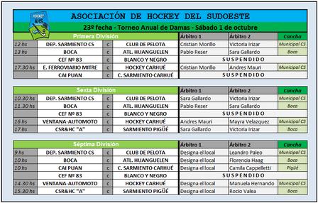 Este sábado se disputará la jornada 23 del Torneo Anual, que ya tiene jugado un partido de Primera división con la victoria de CSR&HC "A" 7 a 0 sobre CSR&HC "B".