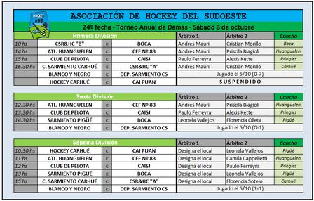 La Asociación de Hockey del Sudoeste programó los cotejos en Sexta, Séptima, y Primera Categoría.