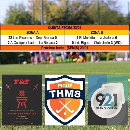 En la otra zona del Torneo de Hockey Nocturno con quince puntos marcha Club Unión, con 9 La Jirafona, con 6 está Independiente Bigote y sin unidades está El Moskito.