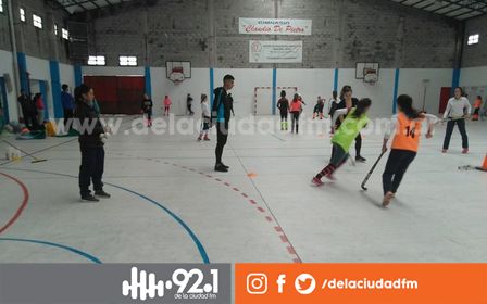 Debido al mal tiempo, los planteles trabajaron en el gimnasio del CEF N° 83 de Pigüé sólo en el turno de la mañana.